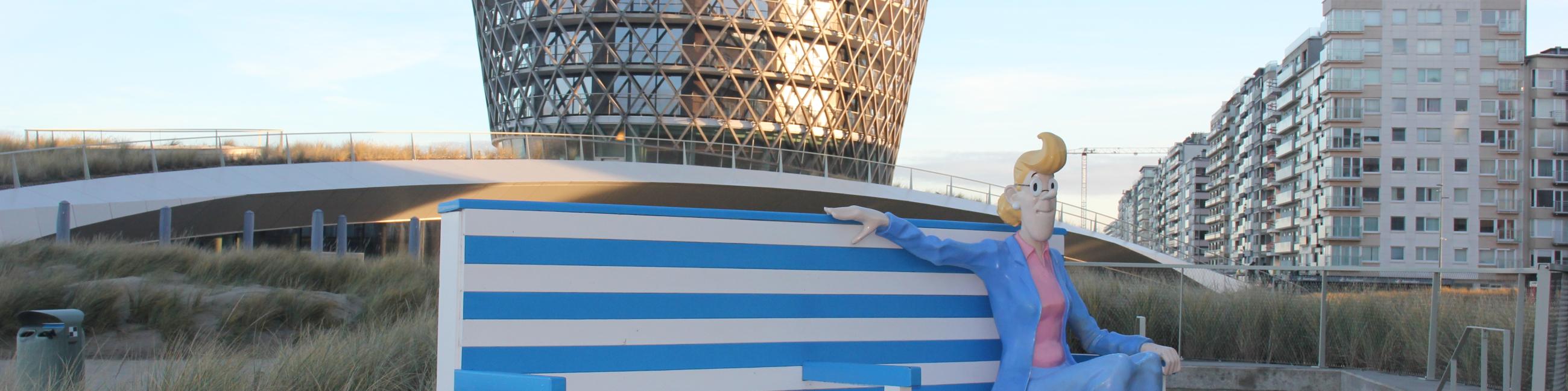 Lust auf ein Selfie mit Meerblick und einer ikonischen Comicfigur? An der Strandpromenade von Middelkerke nimmt Tante Sidonia auf ihrer Selfie-Bank Platz – mit der Nordsee als perfekter Kulisse.