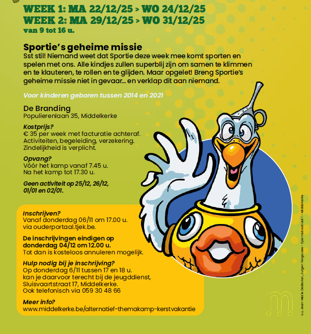 Hulp nodig bij je inschrijving? Op donderdag 06 november 2025 tussen 17.00 u. en 18.00 u. kunnen ouders terecht op de jeugddienst. Adres: Sluisvaartstraat 17, 8430 Middelkerke.