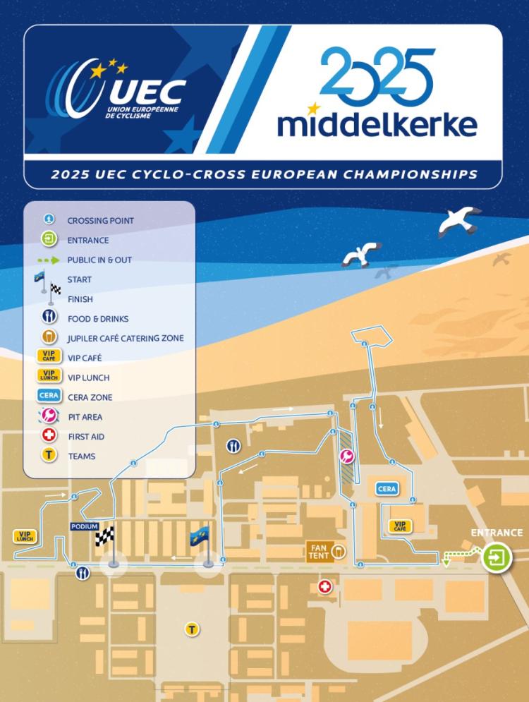 Christophe Impens, organisatie Golazo: “Golazo mocht in 2022 het Belgisch kampioenschap cyclocross organiseren in Middelkerke, ook op het Militair Domein Lombardsijde. Wout van Aert en Sanne Cant veroverden toen de mooie tricoloretrui voor een jaar. Helaas zaten we toen nog met strikte COVID-reglementen en was er geen publiek toegelaten. Komend weekend zullen we zeker 10.000 toeschouwers mogen verwelkomen, die zich kunnen verwachten aan een uniek parcours met de passage op het strand als grote scherprechter. We zijn de Gemeente Middelkerke, Sport Vlaanderen én Defensie enorm dankbaar voor de steun, en we kijken uit naar de strijd om de prachtige Europese kampioenentrui.”