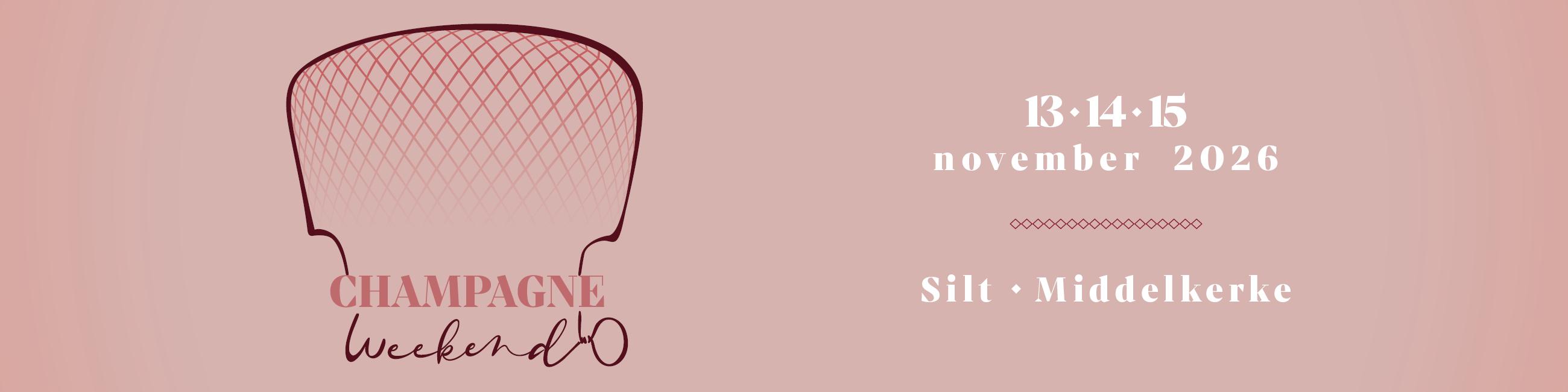 Champagneweekend 2026DatumVR 13 november 2026 tot ZO 15 november 2026LocatieSiltZeedijk 8430 MiddelkerkeWest-Vlaanderen België Noteer alvast 13, 14 en 15 november 2026 in je agenda.