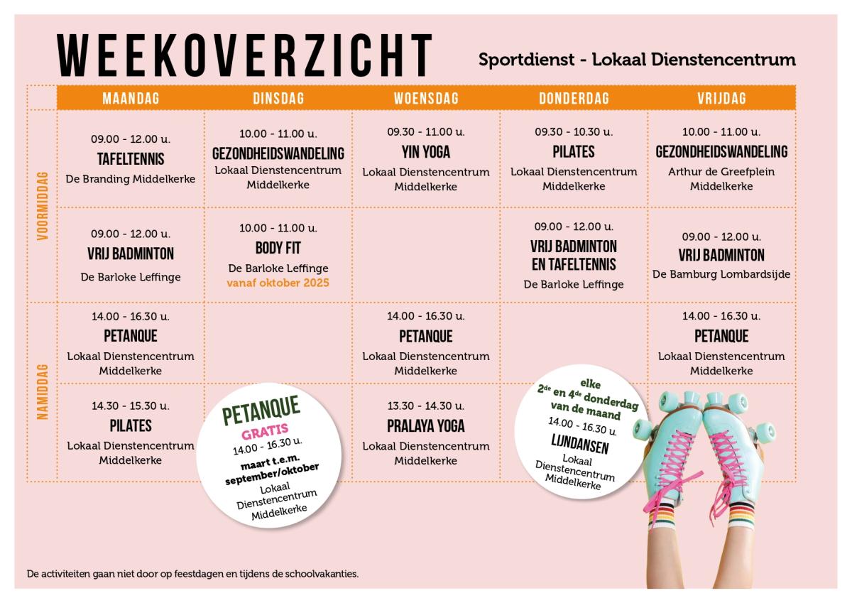 Van badminton en pingpong tot petanque of pilates. Voor elk wat wils!