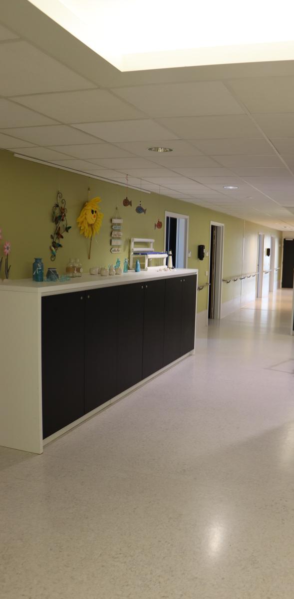 Daarnaast is er op het verdiep een gezellige, gemeenschappelijke leefruimte waar bewoners hun maaltijden nuttigen, zich kunnen ontspannen, deelnemen aan activiteiten en sociale contacten kunnen onderhouden. Elke leefruimte heeft ook een terras om te genieten van de buitenlucht.