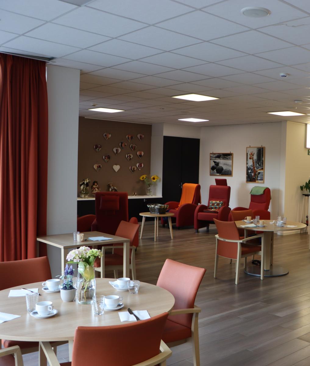 Op elke verdieping is er een gezellige leefruimte waar bewoners hun maaltijden nuttigen, zich kunnen ontspannen, deelnemen aan diverse activiteiten en sociale contacten onderhouden. Aansluitend op iedere leefruimte is er een terras om te genieten van de buitenlucht.
